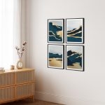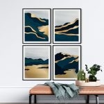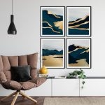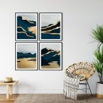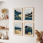 Framed Art | Set of 4 abstract green golden sky landscape | 50+ Frame Styles • Museum Quality • Made in India