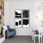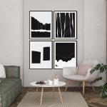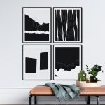 Set of 4 black abstract landscape - Wall Art Decor, Framed Painting, Home Decor - BestOfBharat