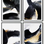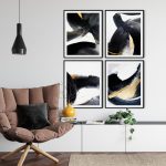 Wall Decor | Set of 4 black golden brushstroke painting | Custom Size & Frame • Ready to Hang • Made in India • Eco-Friendly