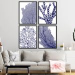 Set of 4 blue coral sea fan and seaweed - Wall Art, Hanging Wall Decor, Home Decor - BestOfBharat