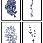 Set of 4 blue seaweed and coral reef plants - Wall Art, Hanging Wall Decor, Home Decor - BestOfBharat