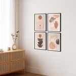 Set of 4 boho botanical geometrical figures - Wall Art Decor, Framed Painting, Home Decor - BestOfBharat
