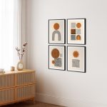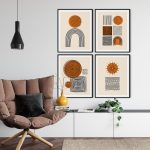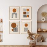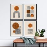 Set of 4 boho burnt orange line drawing geometrical figures - Wall Art Decor, Framed Painting, Home Decor - BestOfBharat