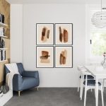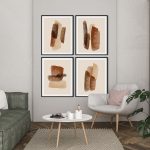 Framed Art | Set of 4 brown minimalist brushstroke | 50+ Frame Styles • Museum Quality • Made in India