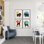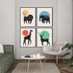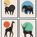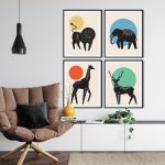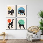 Wall Art | Set of 4 circle, lion, elephant and giraffe | Small to XXXL Sizes • 50+ Framing Styles • Non Toxic