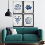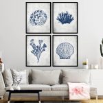 Set of 4 dark blue seashell - Wall Art, Hanging Wall Decor, Home Decor - BestOfBharat