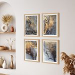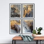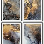 Set of 4 fluid ink golden abstract painting - Wall Art Decor, Framed Painting, Home Decor - BestOfBharat
