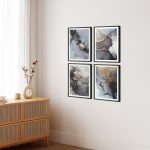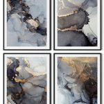 Set of 4 fluid ink grey golden abstract painting - Wall Art Decor, Framed Painting, Home Decor - BestOfBharat
