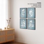 Wall Decor | Set of 4 light blue botanical | Custom Size & Frame • Ready to Hang • Made in India • Eco-Friendly