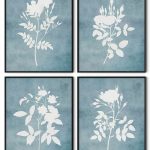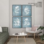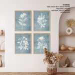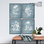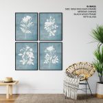 Set of 4 light blue botanical - Wall Art Decor, Framed Painting, Home Decor - BestOfBharat