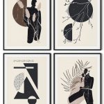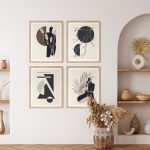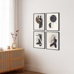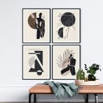 Wall Art | Set of 4 minimalistic silhouette aesthetic geometrical sun tree branch abstract | Small to XXXL Sizes • 50+ Framing Styles • Non Toxic