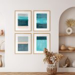 Framed Art | Set of 4 minimalistic watercolor brushstroke blob abstract #250 | 50+ Frame Styles • Museum Quality • Made in India