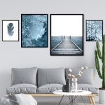 Set of 4 ocean and wooden pier - Wall Art Decor, Framed Painting, Home Decor - BestOfBharat