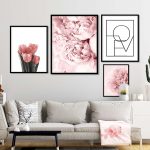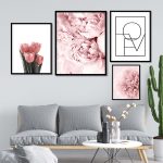 Set of 4 peonies - Wall Art Decor, Framed Painting, Home Decor - BestOfBharat