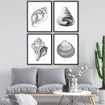 Set of 4 realistic seashell - Wall Art, Hanging Wall Decor, Home Decor - BestOfBharat