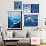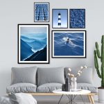 Wall Art | Set of 5 blue seascape and mounatin | Small to XXXL Sizes • 50+ Framing Styles • Non Toxic