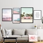 Wall Art | Set of 5 pink beach ocean waves and van | Small to XXXL Sizes • 50+ Framing Styles • Non Toxic