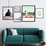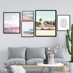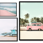 Set of 5 pink beach ocean waves and van - Wall Art, Hanging Wall Decor, Home Decor - BestOfBharat