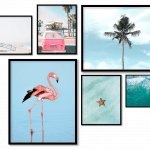 Wall Art | Set of 6 sky blue beach theme | Small to XXXL Sizes • 50+ Framing Styles • Non Toxic