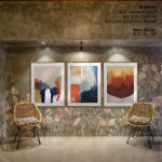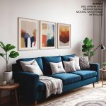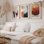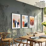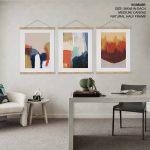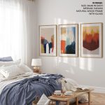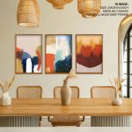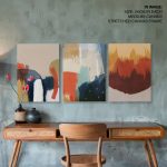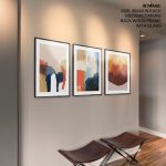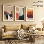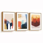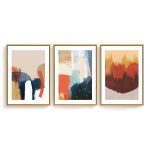 Framed Art | Set of 3 - Abstract Modern Paintings, Framed Wall Art, Navy Brown Beige Blue Mustard Gold | 50+ Frame Styles • Museum Quality • Made in India