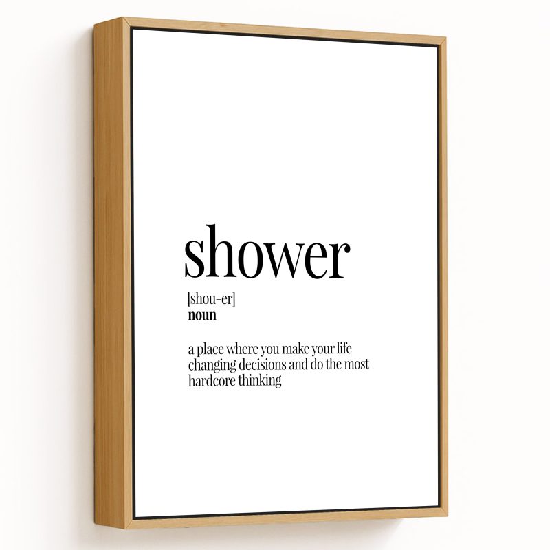 Wall Decor | Shower - Funny Dictionary Definition Wall Decor, Framed Art for cafe, home, restaurant, bar, bathroom - Choose size & custom frame color | Custom Size & Frame • Ready to Hang • Made in India • Eco-Friendly