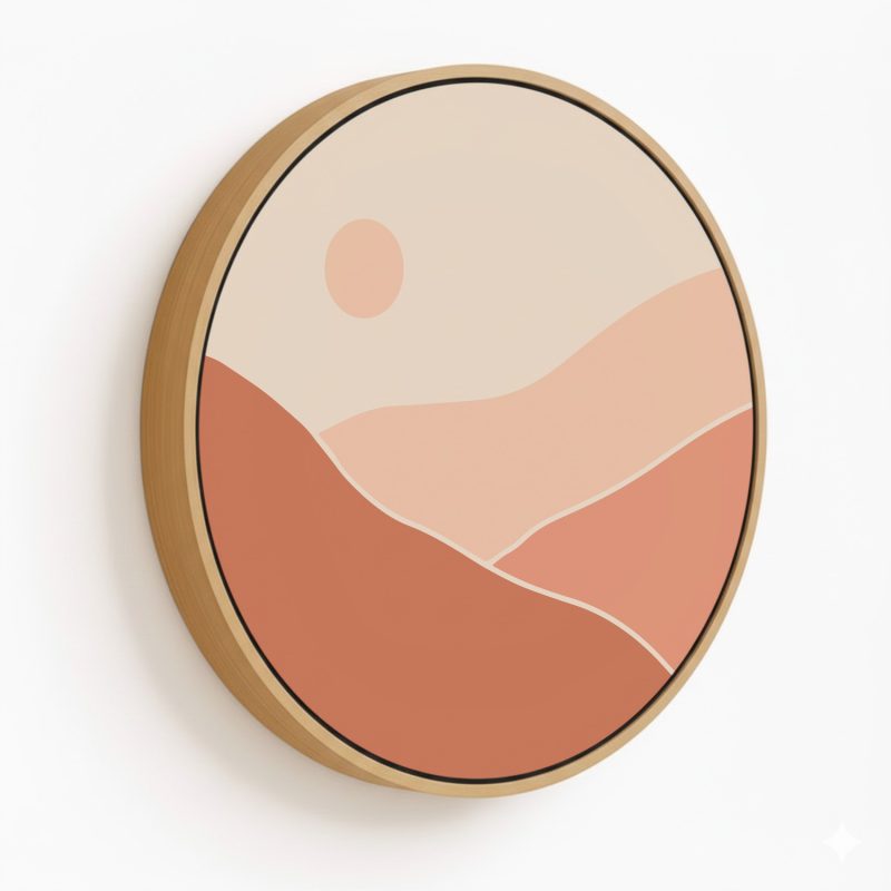 Wall Art | Silhouette boho mountain abstract #116 - Circular Wooden Frame | Small to XXXL Sizes • 50+ Framing Styles • Non Toxic