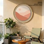 Wall Art | Silhouette boho mountain abstract #116 - Circular Wooden Frame | Small to XXXL Sizes • 50+ Framing Styles • Non Toxic