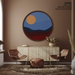 Framed Art | Silhouette hills landscape #765 - Circular Wooden Frame | 50+ Frame Styles • Museum Quality • Made in India