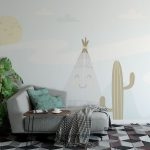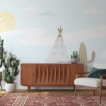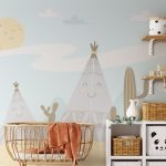 Non-Toxic Wallpaper | Smiling Tribal Tent - Wall Mural, PVC free Wall Covering | 14+ Textures • Free Installation • Made in India