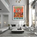- Material: You can choose between different print mediums (Glicee paper or Canvas) and 40+ framing options that you can see on the website. Any order above 18x24 inches is processed in pinewood since synthetic wood is not able to bear its load. Wherever applicable, acrylic glass is used instead of normal glass, for its ease of handling and recyclability.