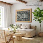 - Material: You can choose between different print mediums (Glicee paper or Canvas) and 40+ framing options that you can see on the website. Any order above 18x24 inches is processed in pinewood since synthetic wood is not able to bear its load. Wherever applicable, acrylic glass is used instead of normal glass, for its ease of handling and recyclability.