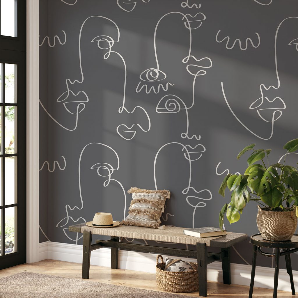Wallpaper | Steel abstract faces | Non Toxic, No VOC, 14+ Textures, Free Installation