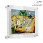 - Material: You can choose between different print mediums (Glicee paper or Canvas) and 40+ framing options that you can see on the website. Any order above 18x24 inches is processed in pinewood since synthetic wood is not able to bear its load. Wherever applicable, acrylic glass is used instead of normal glass, for its ease of handling and recyclability.