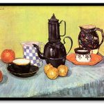 Still life with blue enamel coffeepot earthenware and fruit by Vincent van Gogh (1888)