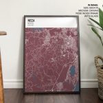 Wall Decor | Strip above poster red map of Ciudad Nezahualcoyotl | Custom Size & Frame • Ready to Hang • Made in India • Eco-Friendly