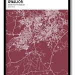Framed Art | Strip above poster red map of Gwalior | 50+ Frame Styles • Museum Quality • Made in India