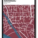 Framed Art | Strip above poster red map of Narayanganj | 50+ Frame Styles • Museum Quality • Made in India