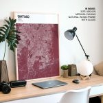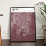 Wall Decor | Strip above poster red map of Santiago | Custom Size & Frame • Ready to Hang • Made in India • Eco-Friendly
