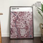 Wall Decor | Strip above poster red map of Subang Jaya | Custom Size & Frame • Ready to Hang • Made in India • Eco-Friendly