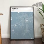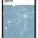 Framed Art | Strip above poster sky blue map of Jamnagar | 50+ Frame Styles • Museum Quality • Made in India