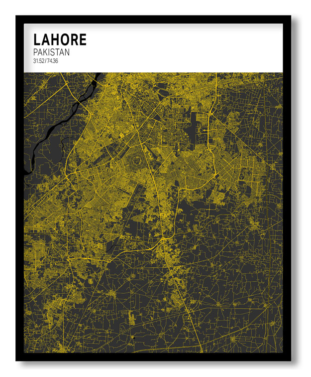 Wall Art | Strip above poster white map of Lahore | Small to XXXL Sizes • 50+ Framing Styles • Non Toxic