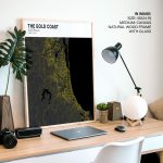 Wall Art | Strip above poster white map of The Gold Coast | Small to XXXL Sizes • 50+ Framing Styles • Non Toxic