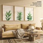 Succulent Watercolor Leaves Framed Wall Art (Set of 3), Nature Art, Botanical, Tropical - Choose Size and Frame Color