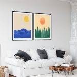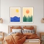 Wall Decor | Sun shining over ocean and pines | Custom Size & Frame • Ready to Hang • Made in India • Eco-Friendly