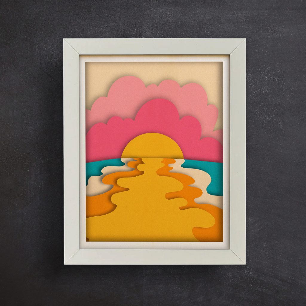 Wall Sculpture | Sunset Vista Shadow Box: Handcrafted 3D Landscape Artwork | 3D Art • Ready to Hang • Made in India