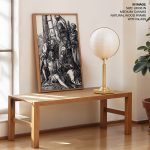 - Material: You can choose between different print mediums (Glicee paper or Canvas) and 40+ framing options that you can see on the website. Any order above 18x24 inches is processed in pinewood since synthetic wood is not able to bear its load. Wherever applicable, acrylic glass is used instead of normal glass, for its ease of handling and recyclability.