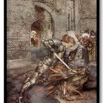 Lancelot Fights Against a Dragon at the Castle of Corbin by Arthur Rackham