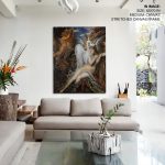 - Material: You can choose between different print mediums (Glicee paper or Canvas) and 40+ framing options that you can see on the website. Any order above 18x24 inches is processed in pinewood since synthetic wood is not able to bear its load. Wherever applicable, acrylic glass is used instead of normal glass, for its ease of handling and recyclability.