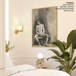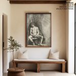 Nude man seated before a curtain by Rembrandt (1646)