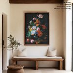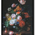 Roses, Tulips and Other Flowers in a Glass Vase on a Marble Ledge by Rachel Ruysch (1709)